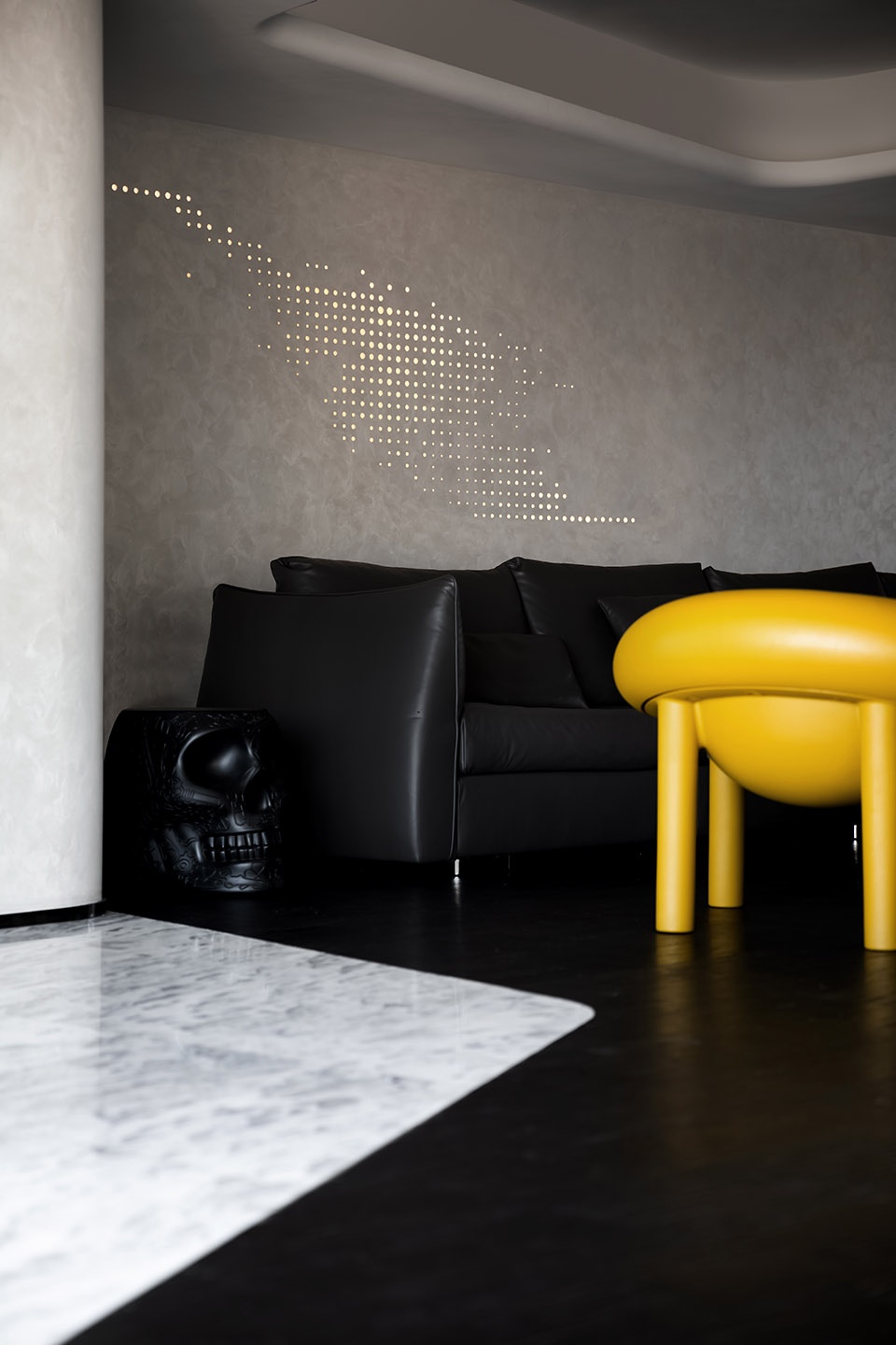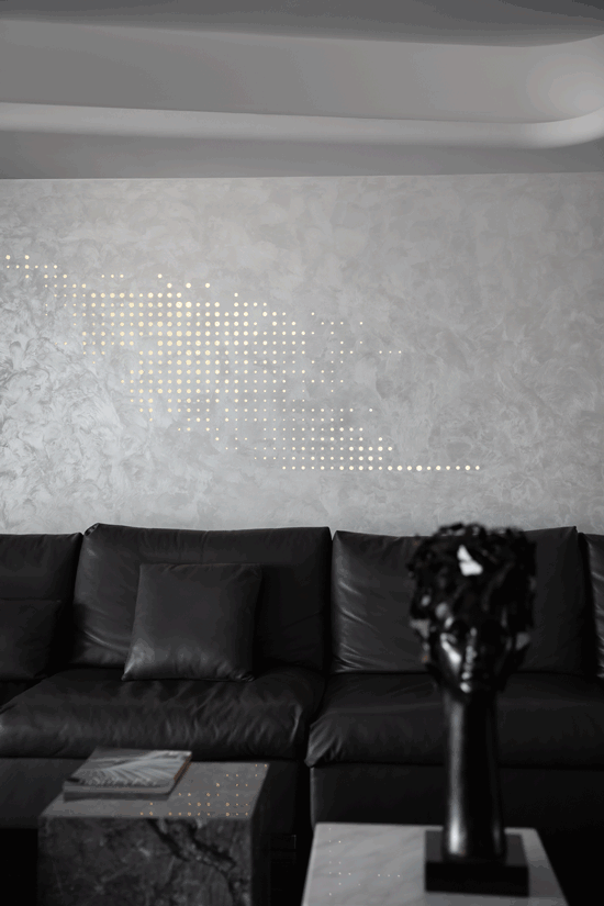 我们把这个项目定义为一个冷酷绅士,理性与逻辑人文环境。空间似乎是动态的,一个稳定物质世界变化的存在。这是在几何之外的一种逻辑,一种运动之中的形态。至于为什么要这样,我想这并不重要。冷静与优雅并存的性格,它就像一个身穿黑色西装的时尚宠儿。黑白相间的空间调性,少而精的软装配套也是我们对人居环境软装提出一种新的探讨,追求一种极简的生活状态。追求大宅的空间尺度,未来感的表皮与富有科技感的智能家居系统结合的人居空间,这是我们对现在豪宅的理解,功能只是满足现代人的生活基本诉求,体验感与仪式感是功能之上的一种升华,用空间来表达一个人的气质与性格是我们在探究的东西。