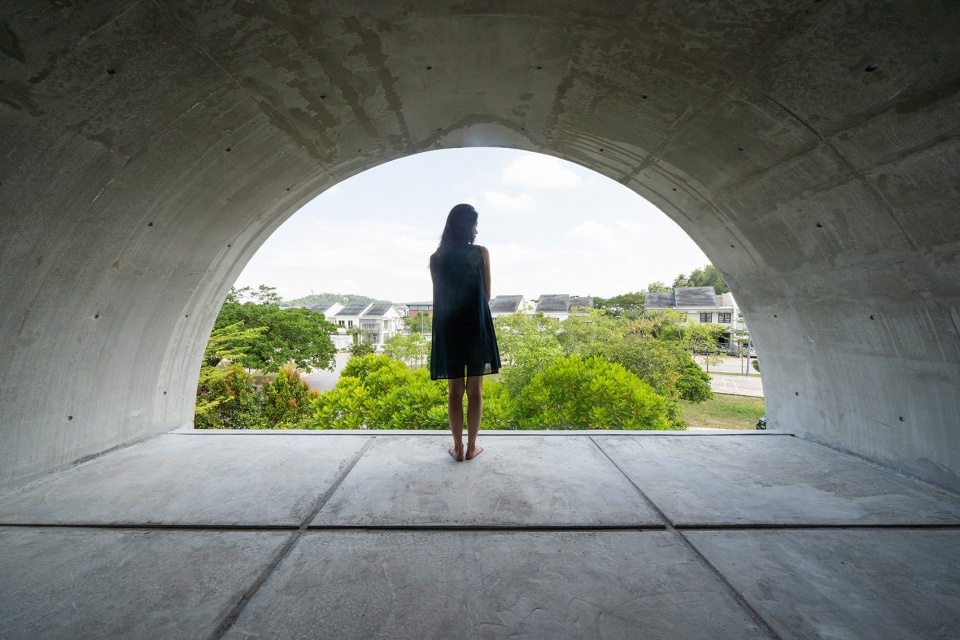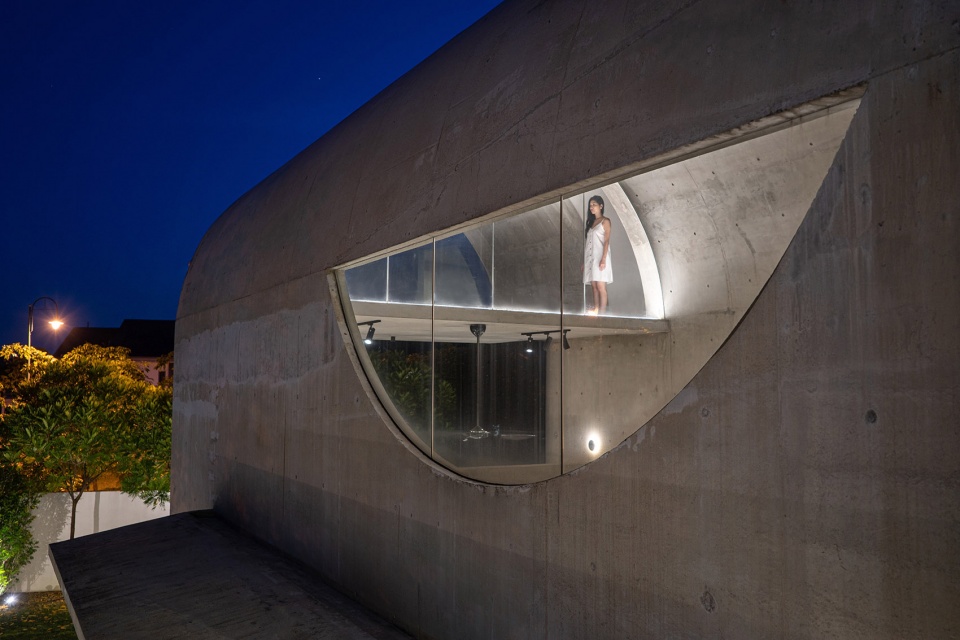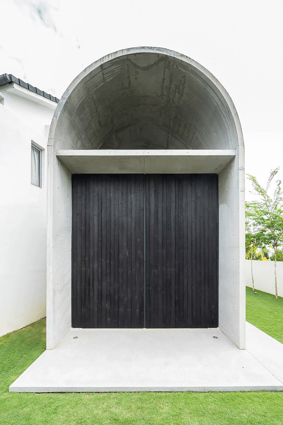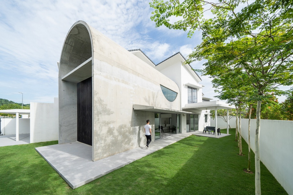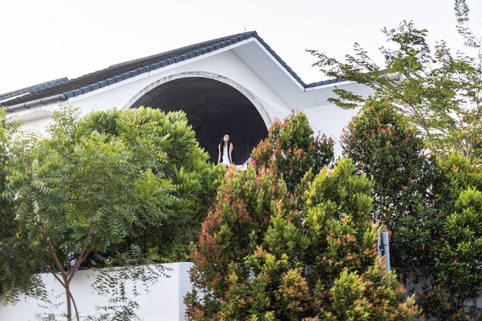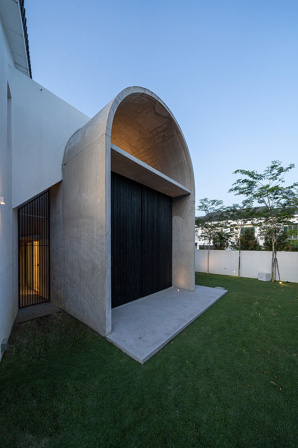 ▼屋顶向外延伸,形成了一个拱形的附属建筑,an arch roof extends outwards, creating a vaulted annex © Ceavs Chua