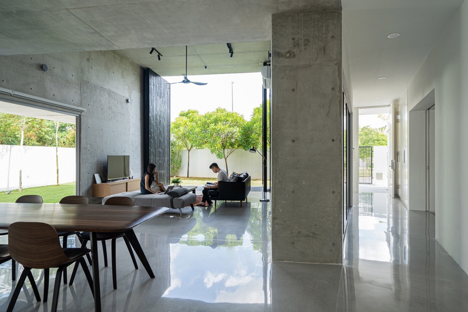 ▼室内空间在两扇大门敞开后与花园相连,the interior space connects to the garden after two open doors © Ceavs Chua