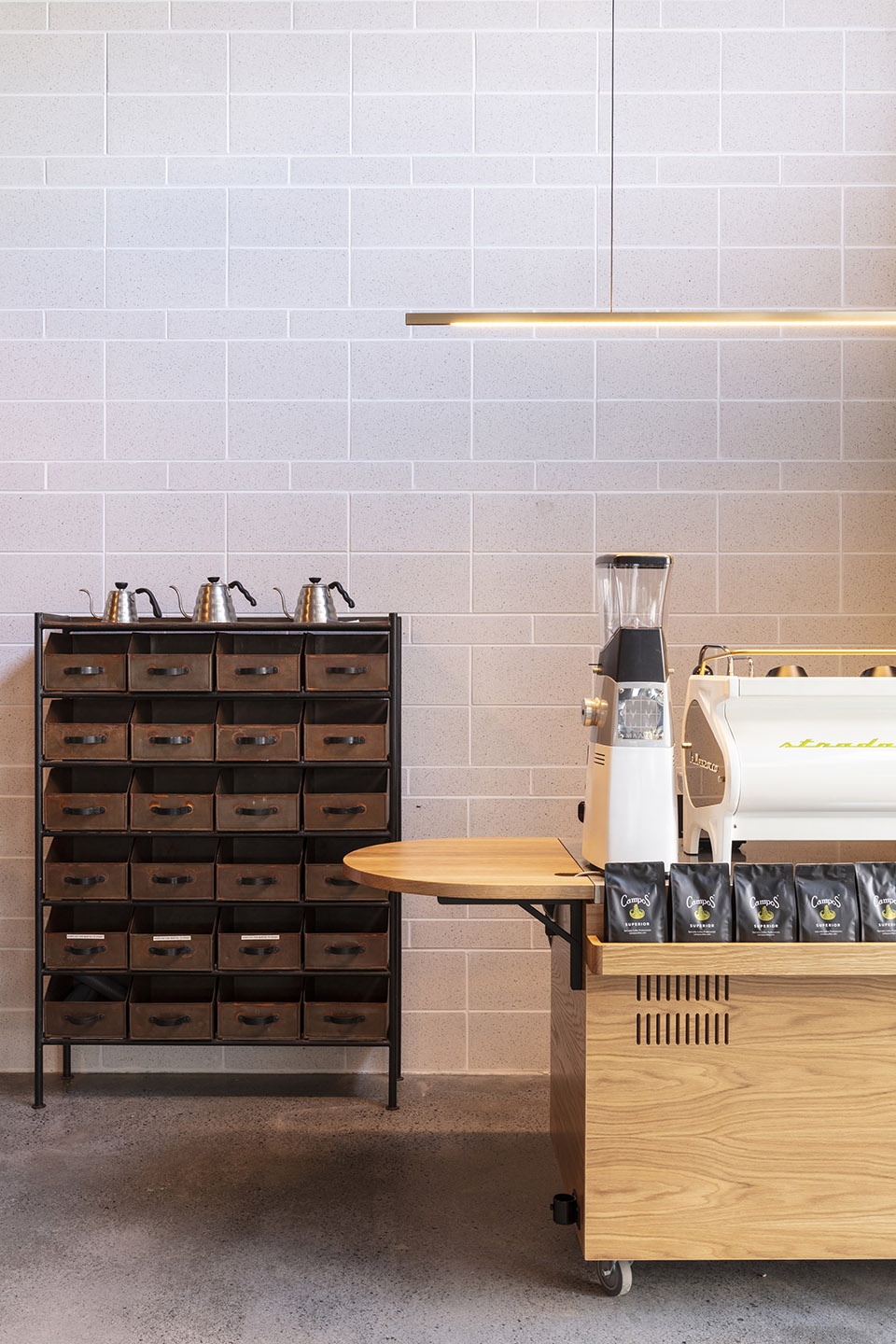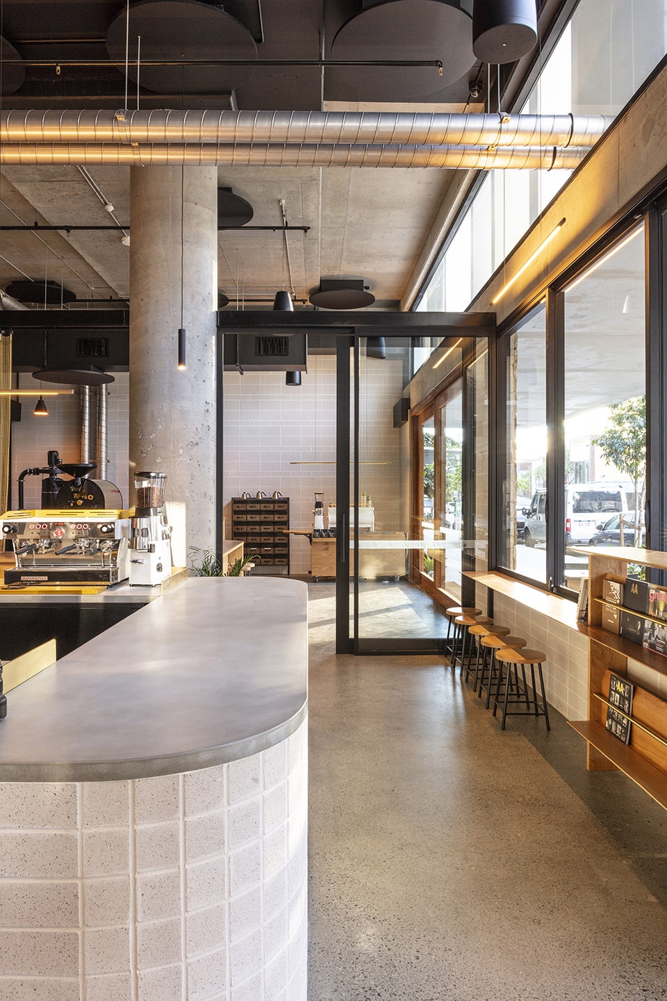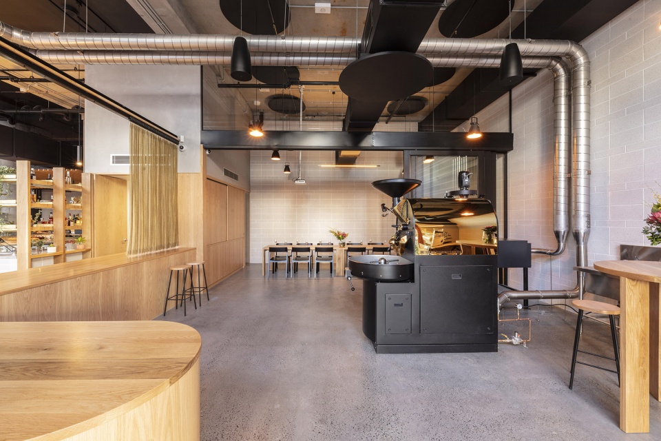 Campos: a refined Cafe/roastery with an arresting interior, painstakingly crafted to create a new marque for Campos Coffee in Queensland.