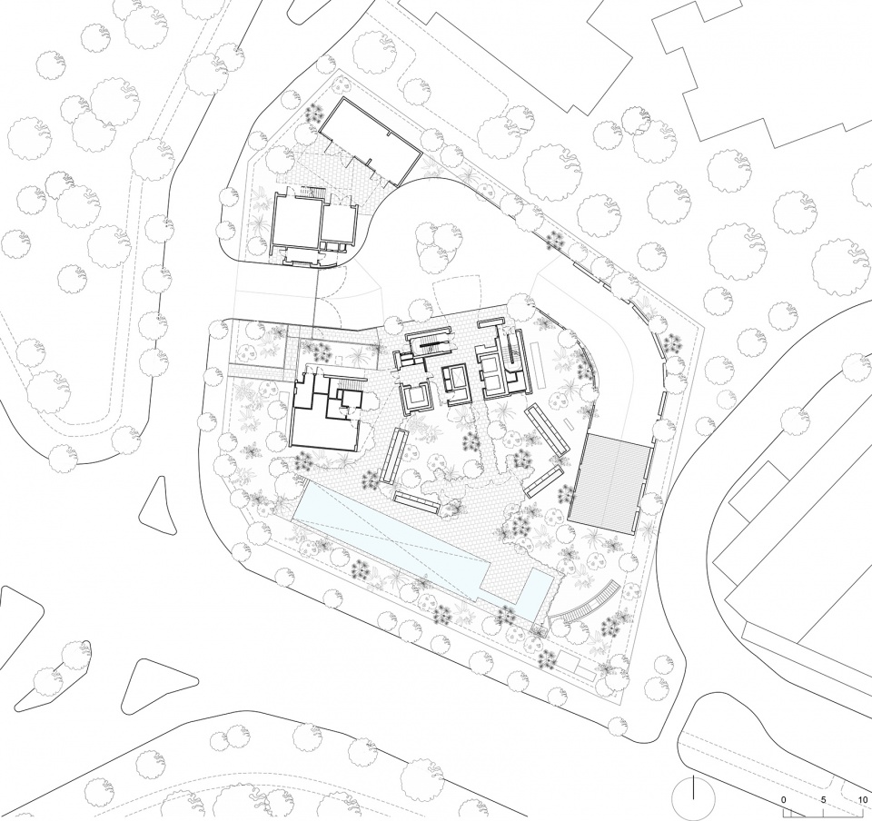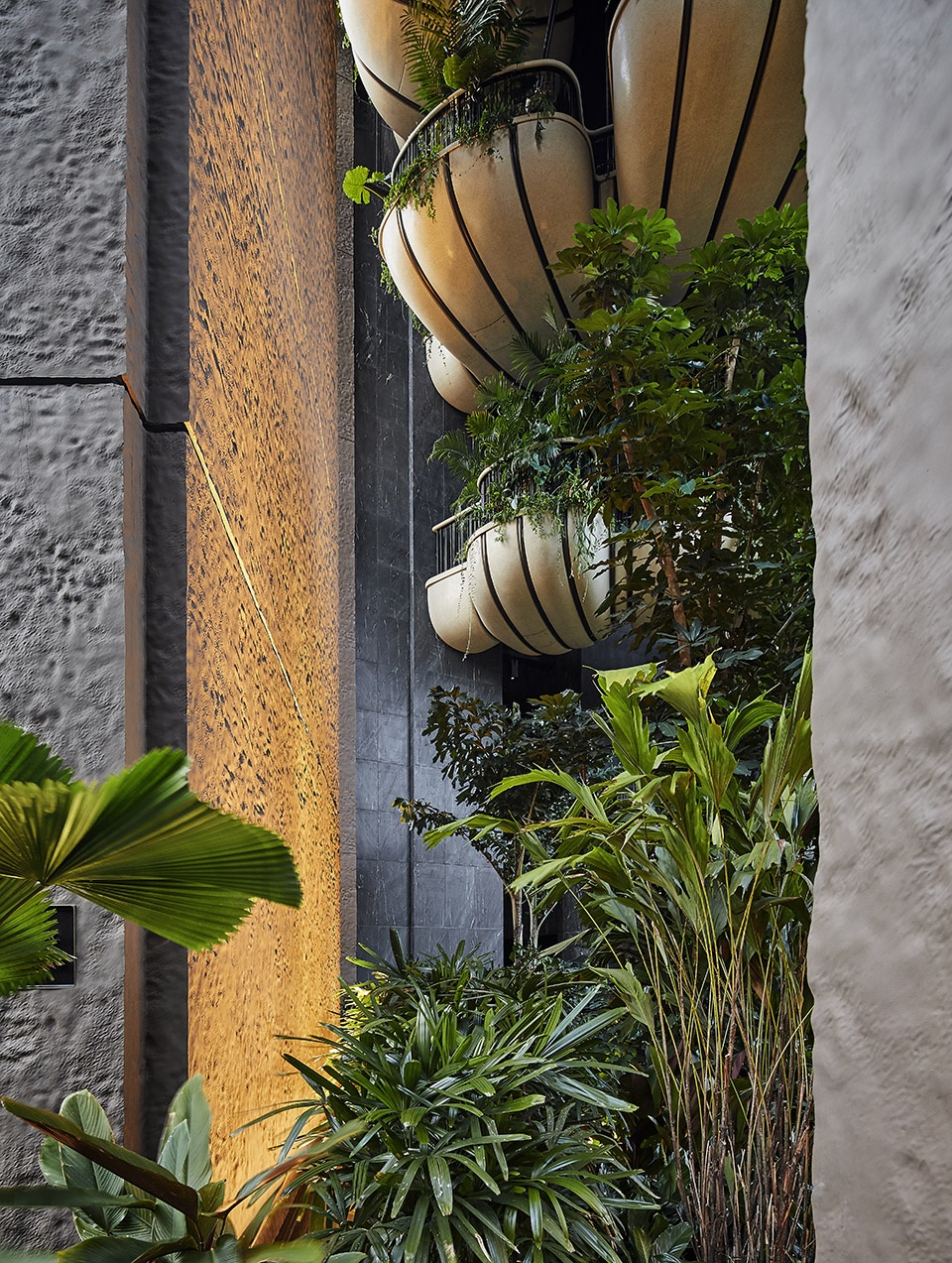 The unconventional concrete walls are moulded with a topographical map of Singapore’s terrain, which has been abstracted to create a unique three-dimensional texture.