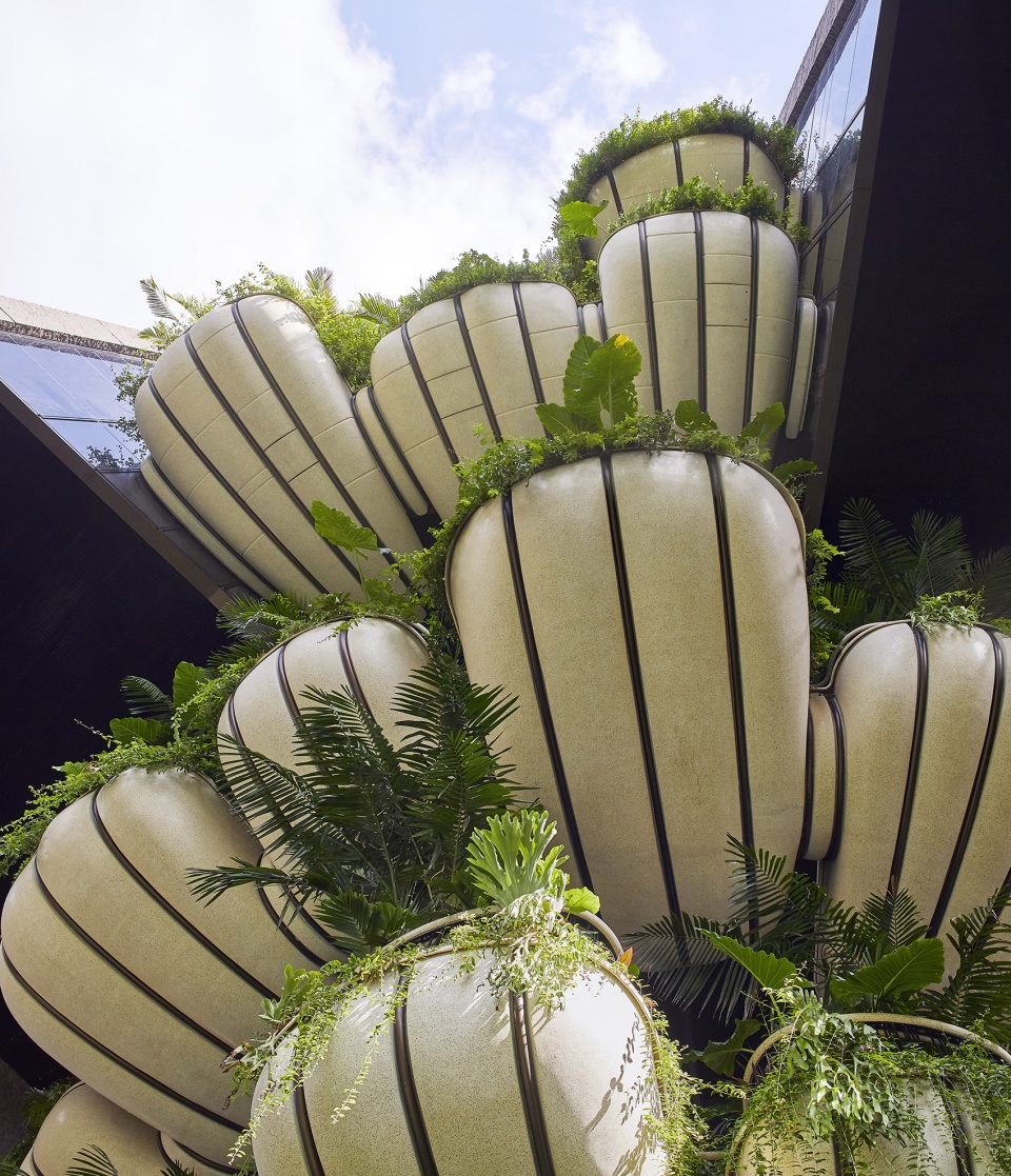 Heatherwick Studio was commissioned by Swire Properties to design an apartment building in the historic Newton district of Singapore. Inspired by the vision of a ‘city in a garden’ imagined by Lee Kuan Yew fifty years ago, and by the lush tropical setting of the area, the studio’s design is a radical departure from the glass and steel tower typology. The studio set out to craft homes within a garden that also harnessed all the benefits of apartment living; a place where residents would feel connected to the city’s tree-lined streets whilst enjoying views, light and privacy.