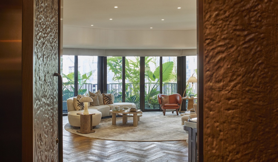 A beautifully crafted lift takes residents to their private floor. At the heart of every apartment, there is a large light central space, sheltered by the concrete structure and wrapped in the greenery of the lush tropical balcony, with views of the city beyond – this is conceived as a place for togetherness. More private rooms and discreet service areas extend from this main living space in an intuitive, flexible arrangement.