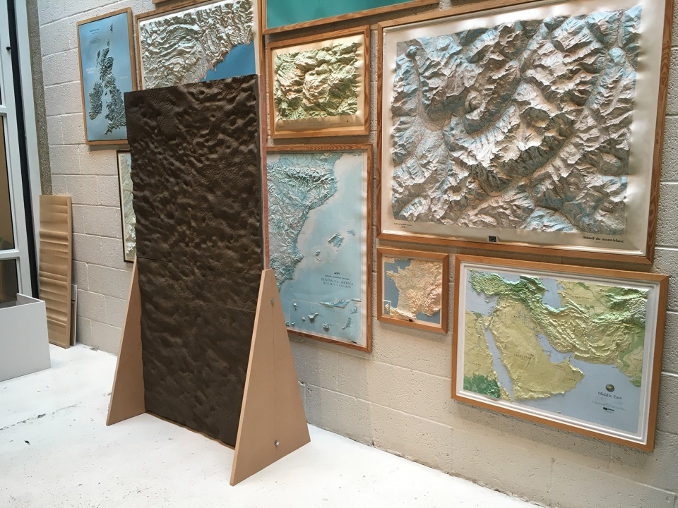 混凝土墙是按照新加坡地形图的肌理铸造而成,经过抽象化的处理,形成独特的立体效果。