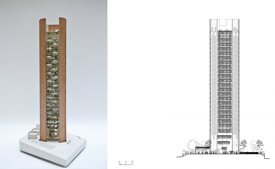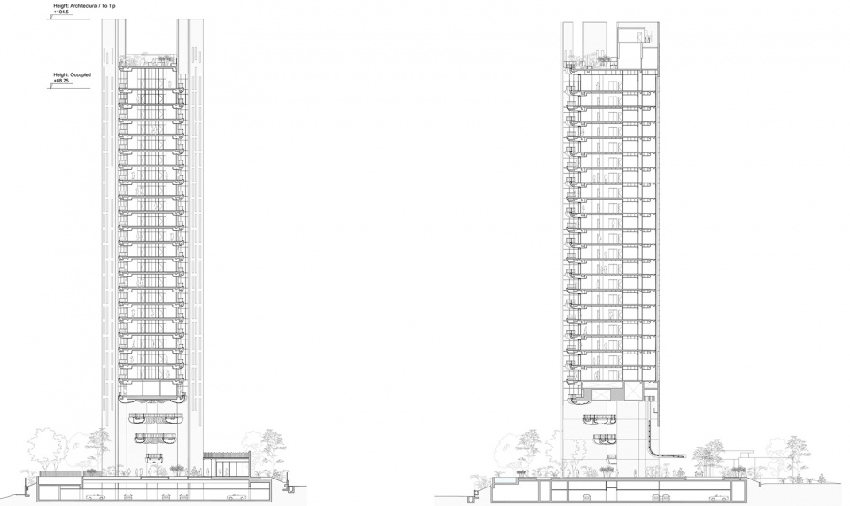 该项目展现了一种与众不同的城市生活方式,同时兼顾了精致巧妙的材料、质地和工艺细节和对当地自然景观的尊重和赞美。随着时间的推移和植物的蓬勃生长,建筑将如扎根于街道的树苗般不断趋近“成熟”,最终将新加坡的景观推向天空。最低一层的公寓距离街道层也有23米的高度,因而每间公寓都能够享受到朝向城市天际线的壮观视野。