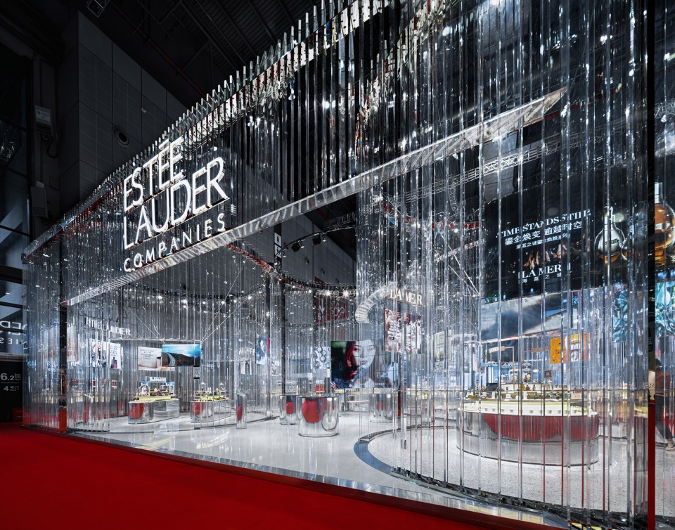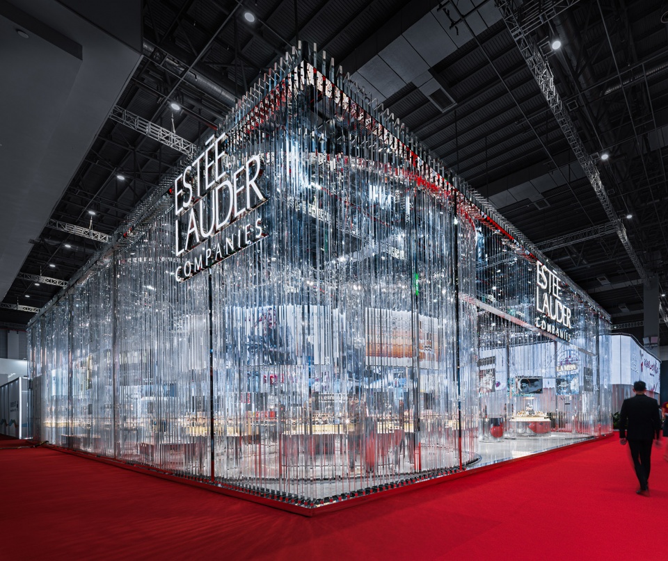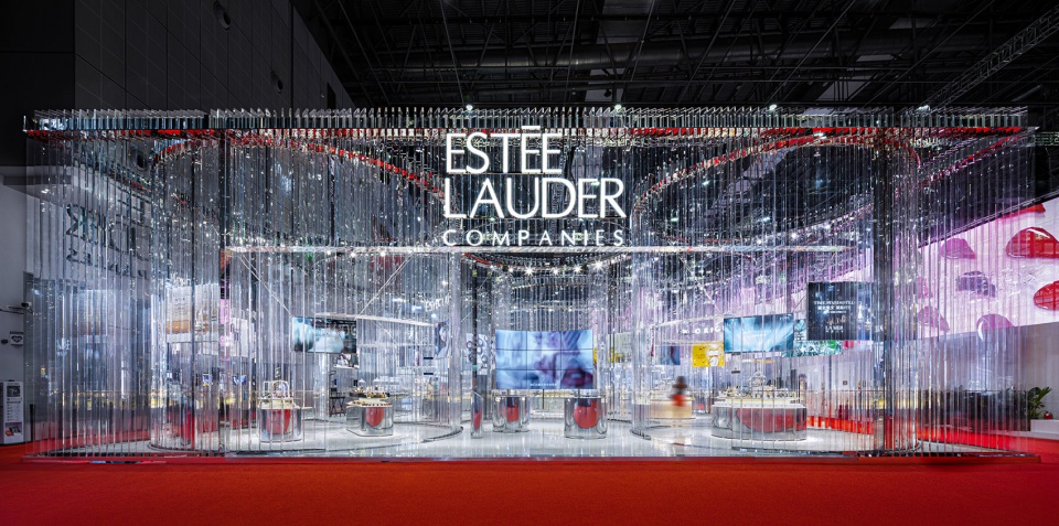 dongqi Architects为雅诗兰黛集团设计了其参加2019年中国国际进口博览会的展馆,向观众展示了集团企业文化、集团旗下13个在华品牌、以及即将进军中国市场的新品牌。展馆总面积为420平方米,高6米,使用了约2000根5500高透明亚克力柱体。