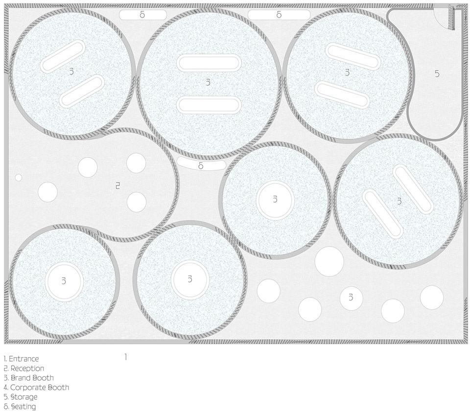 Aside from the cylindrical units, dongqi arranged other areas enclosed by the cylinders and external walls for new brands, functional areas such as those for seating, M.E.P and storage. Despite the free flow of space arrangement, the narrative was still coherent, so that a visitor’s path was maximized without missing any scene.