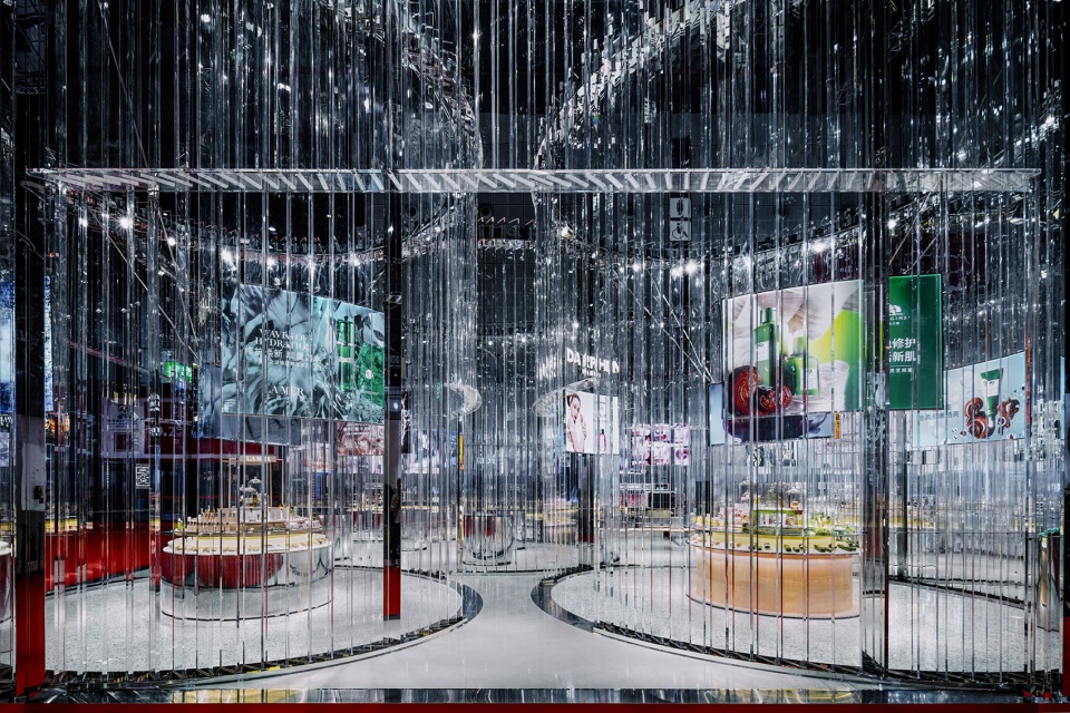 dongqi Architects designed the Estée Lauder Companies pavilion at the China International Import Expo (CIIE) 2019,which allowed the visitors to experience Estée Lauder Companies’ corporate culture, 13 classic brands operating in China, and new brands that would soon make their debut in China. The pavilion had a total area of 420 square meters and a height of 6 meters and used about 2000 5500mm-long acrylic columns with see-through clarity to create a “crystal pavilion”.