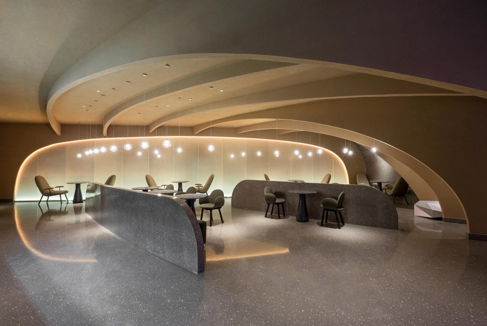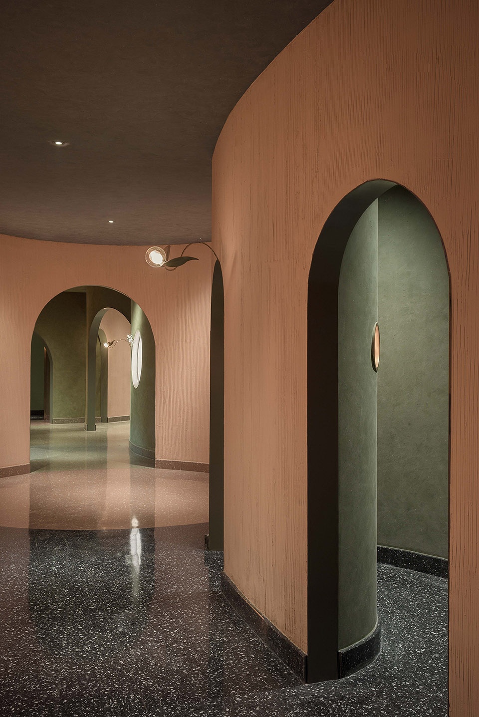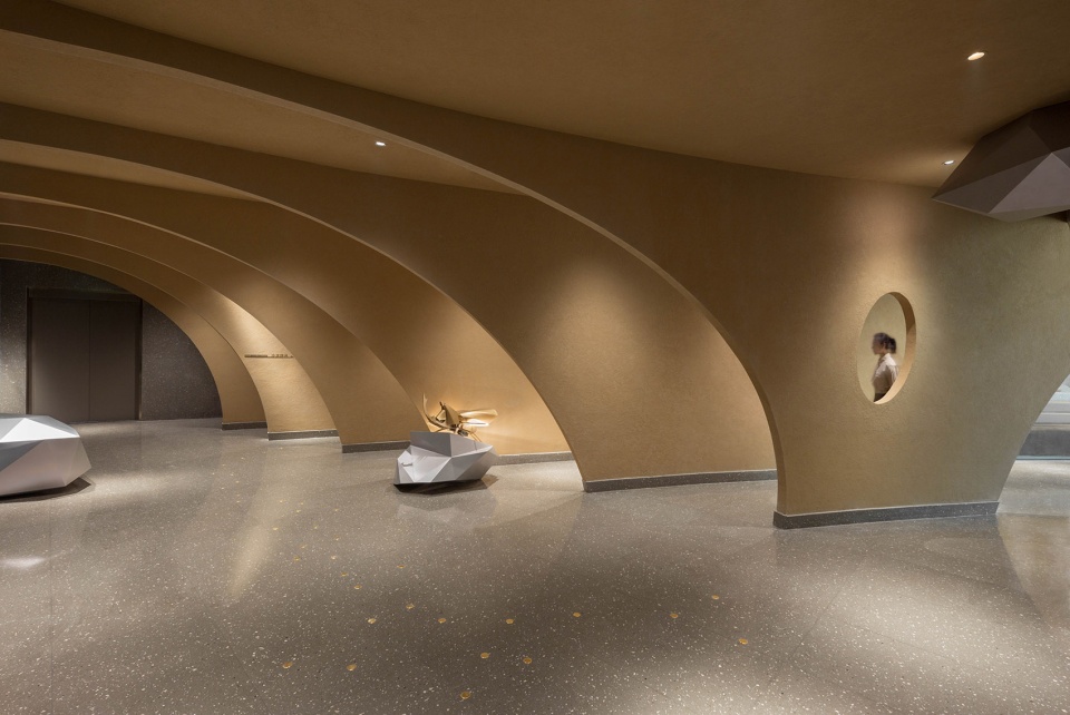▼弧形墙面和装置创造戏剧性的空间,curved walls and installations creating a theatrical space ©汪敏杰
