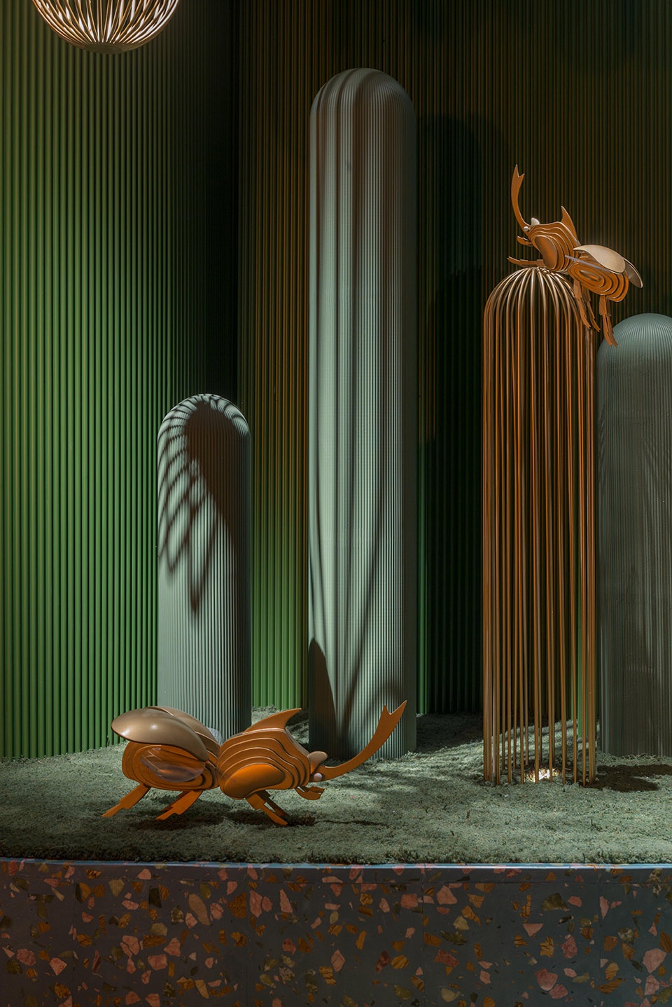 FOREST FOR REST is a new leisure & wellness brand, which is mainly targeted at young generations. As approaching the project, the primary task was to shake off customers’ stereotype of the industry by upgrading foot spa experiences. So as to covey the idea that traditional foot bath could also be cool and become a new fashion. The design team chose Hercules beetle as the icon of the brand, since it symbolizes healing, energy and vitality. Its image is extended to print materials, screens and three-dimensional installations in a holistic manner. It is widely applied to the offline space and online APP, to tell the brand story where travelers encounter an oasis after a long, arduous journey in the desert and eventually find a wonderland under the guidance of the Hercules beetles. It’s just like the process where stressed young urbanites enter this space, in which their body and mind are relaxed and healed by foot bath and spa experiences.
