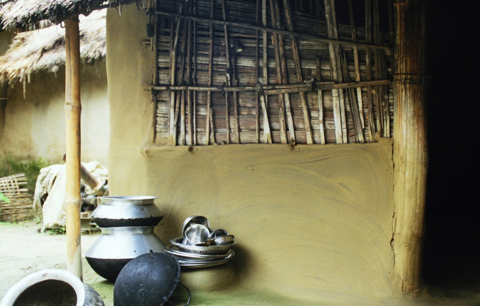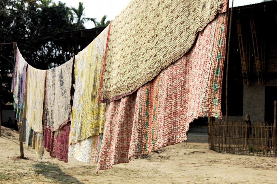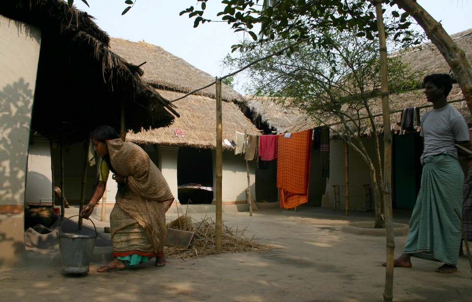 我十九岁第一次到Rudrapur的时候,感到那里的一切都很宁静。我能感觉自己走的比往常慢,所有的感官都苏醒了,没有了交通的噪音,能听到鸟叫声、昆虫声、人们的歌声……一切都很浓烈,但同时又很柔和。当地人的织物色彩艳丽,纱丽是浓郁的绿色。村子里会有一些紧凑的巷子,但是由于村子里的茅草屋是由村民的双手搭建的,当你身处其中时,不会感到有任何扎眼的景象——有一种柔和镶嵌在其中。