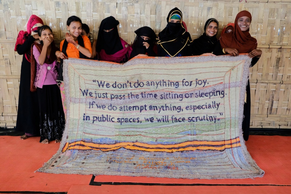 ▼与Kutupalong难民营的妇女一起完成的纺织品项目,a textile project in collaboration with women at Kutupalong Refugee Camp ©Shaowen Zhang