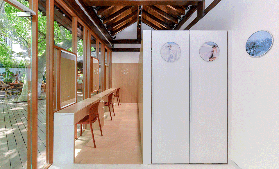 This is what the space should conclude: three makeup area, three dressing room, as many wardrobes and showcases as possible, 10 lockers, a removable reception desk and finally, an exhibition area. Besides, how to design a space to reflect brand culture and value within the context of west lake and a Song Dynasty style building is the essential question to be solved.