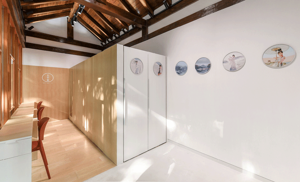 The project is located in West Lake area, between the bustling downtown and peaceful lake side. It is part of the West Lake upgrading project. Our mission is to renovate a Song Dynasty style building with a gross interior area of 16.5㎡ into a traditional Chinese clothes experience and Photoshop studio. Additionally, as the first offline experience store of the internet based clothes brand, it is also the brand experience and exhibition center.