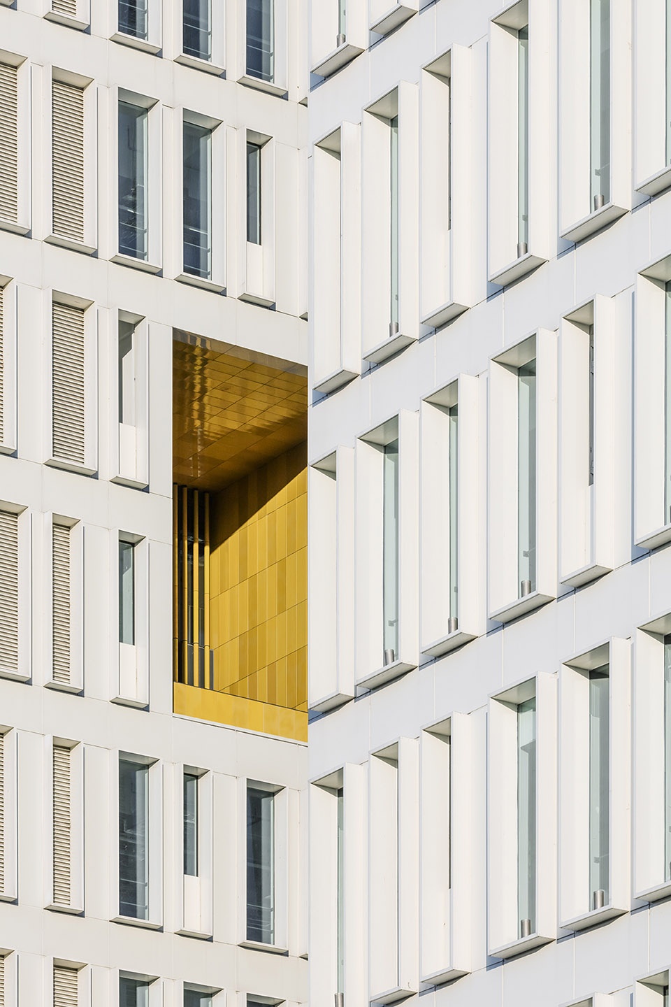 The architecture is sober and unitary, bringing a calm counterpoint in a Shanghai in constant movement. The numerous loggias are identified by the use of colored ceramic tubes, a contemporary evocation of bamboo using ancestral Chinese know-how. The interplay of colors and materials creates a sense of movement, and a constantly shifting façade viewed differently from various standpoints.