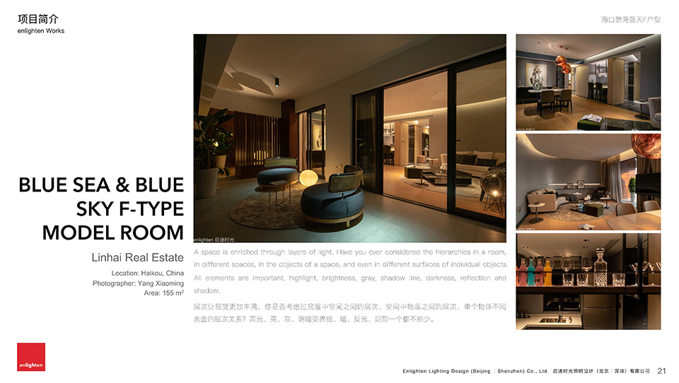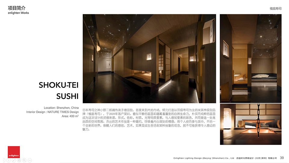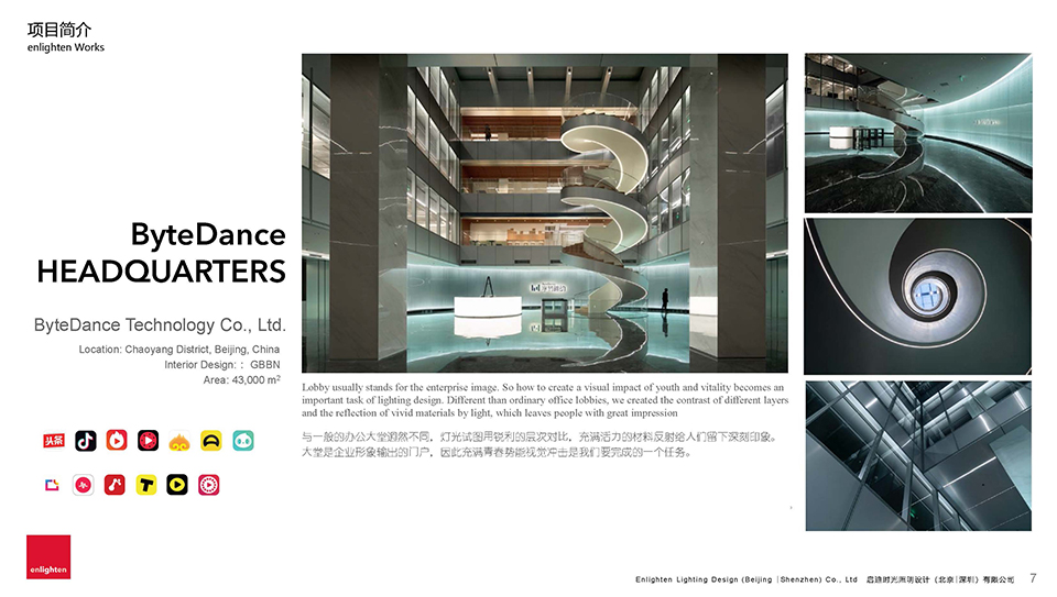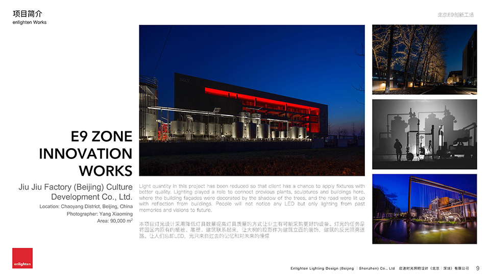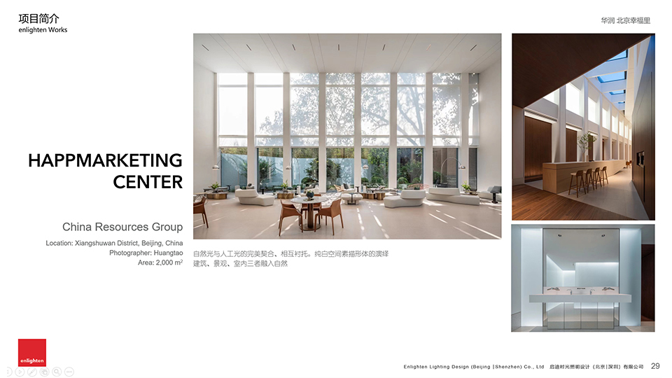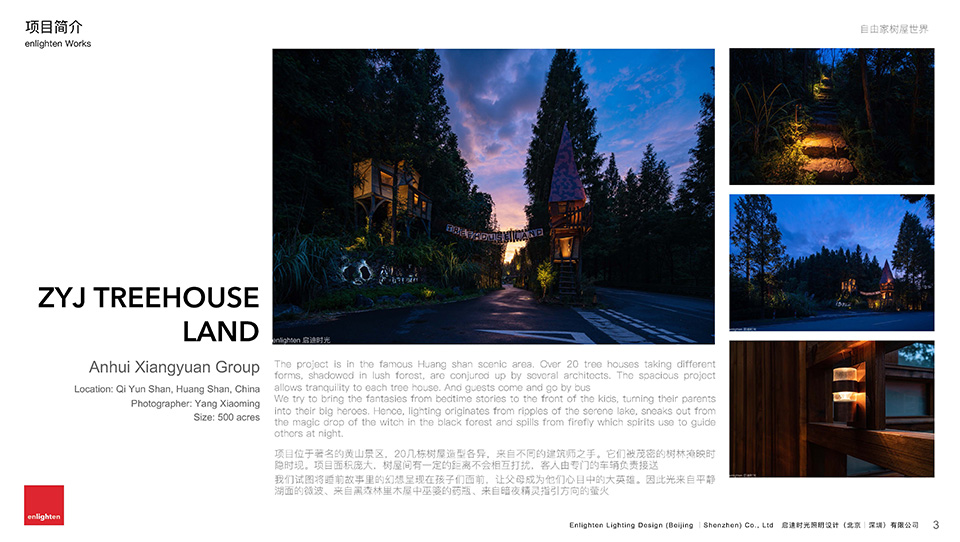 启迪时光是一家以“光” 为核心业务的专业设计服务机构,目前设有北京、深圳、昆明三地办公室,自成立之初一贯致力于提高光在社会生活中的艺术价值和认知度。服务以传统的商业建筑、城市景观、酒店室内灯光设计为基础,逐渐向文化旅游、灯光艺术设计培训、夜景视频制作等领域延伸。用更丰富更多元更易于感知的手法,让人们认识光、理解光、享受光。公司采取先进的人才自主管理体系,摒弃地产业高速发展时代滋生出的设计企业陋习。为有独特思维的设计师提供更自由的创作环境。