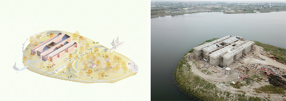 ▽浙江嘉兴 银杏湖湖心岛美术馆(正在施工中)