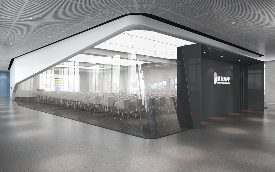本项目原为教职工会议及办公层,因年久,使用率较低,因此改造为教职工喜爱的办公及活动空间。改造手法上采用较现代的材质及表现手法,融入城市&文化&科技等元素,使整个室内空间通透明朗/焕然一新。