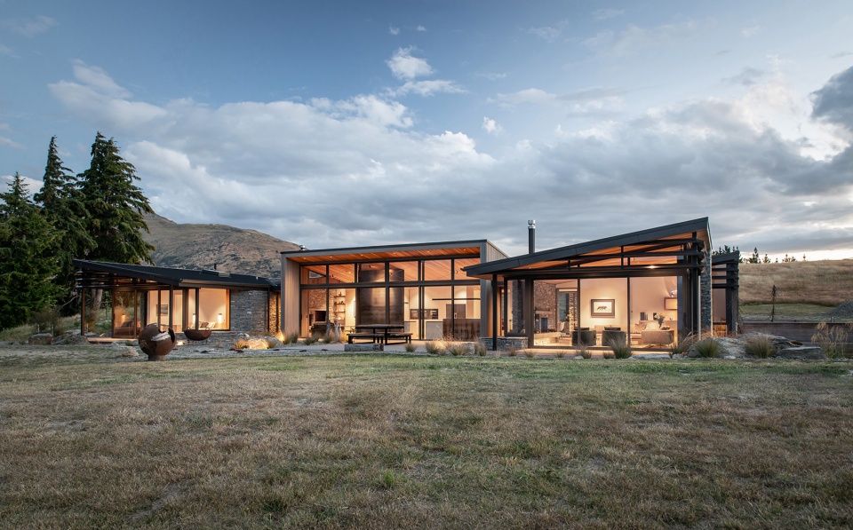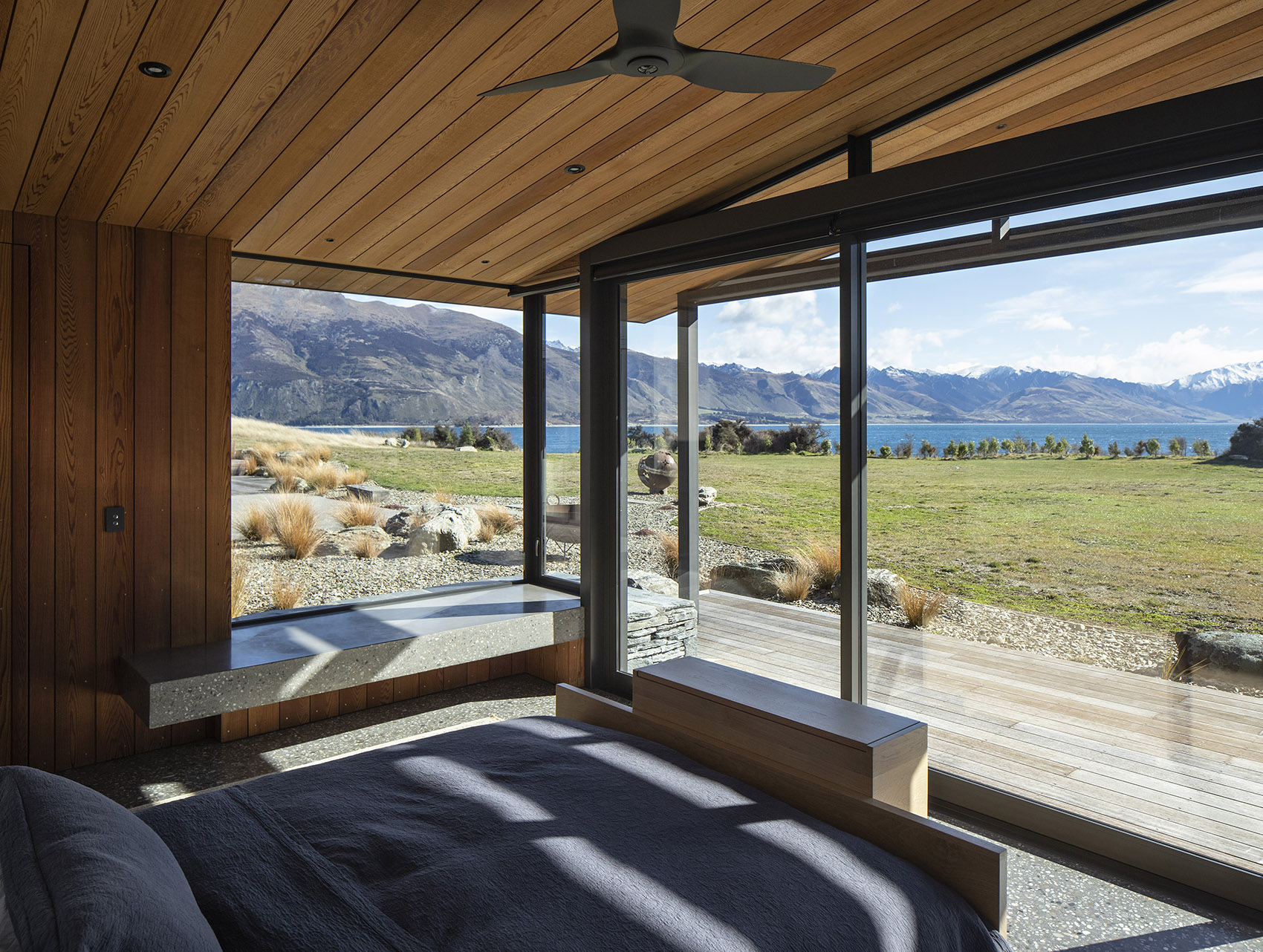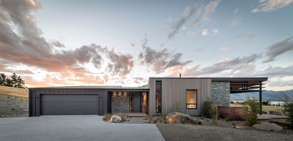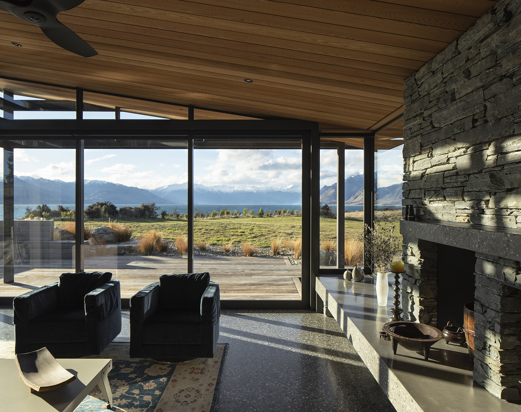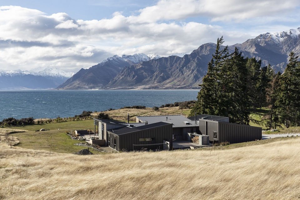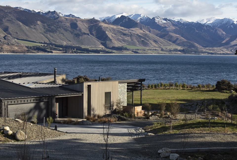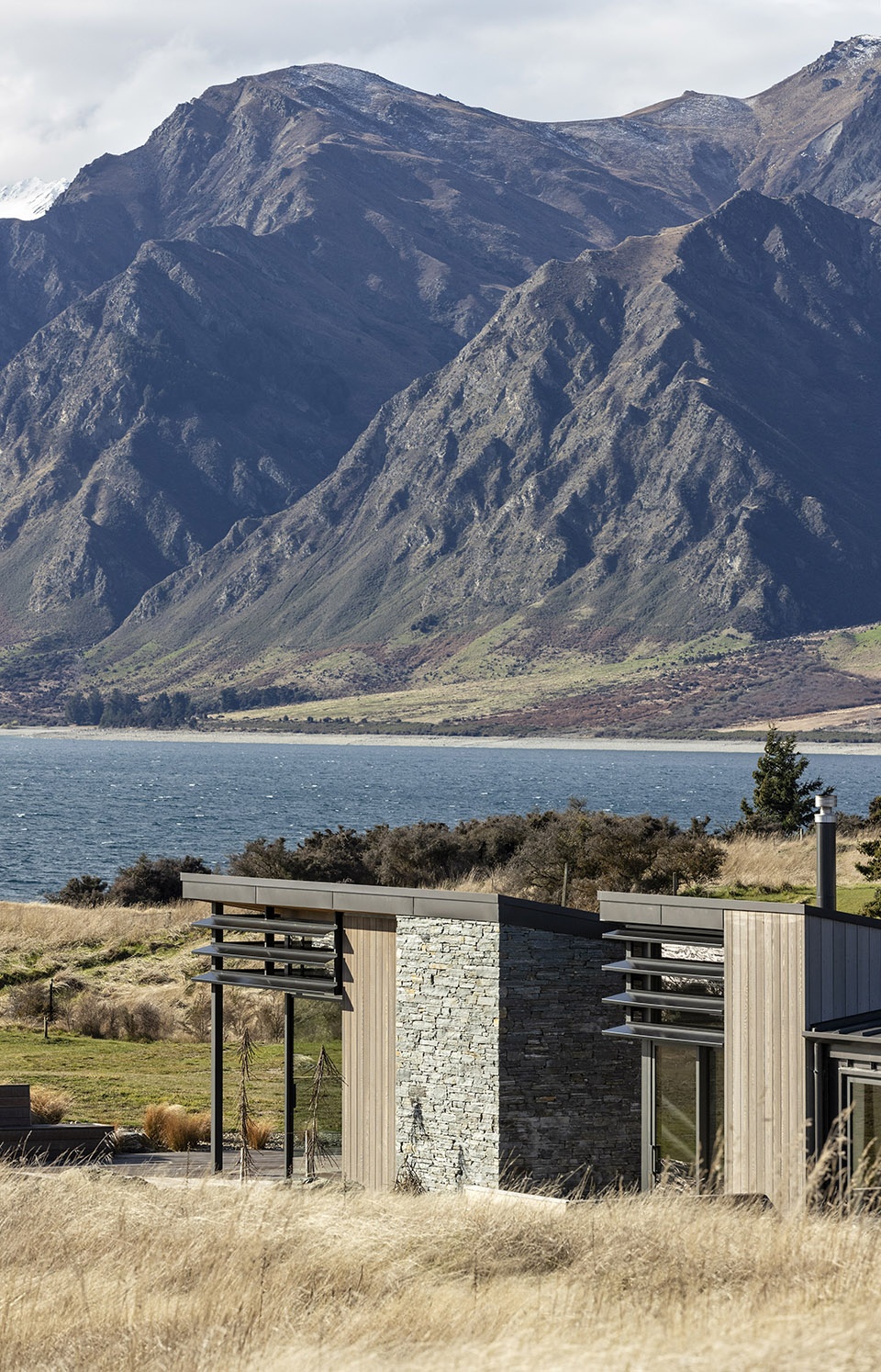 Located on the shores of Lake Hawea, twenty minutes’ drive from Wanaka, this newly constructed house capitalises on breathtaking views of the lake and Southern Alps, while creating a family home that is warm and sheltered from the weather, with an aesthetic that is definitively of the area.