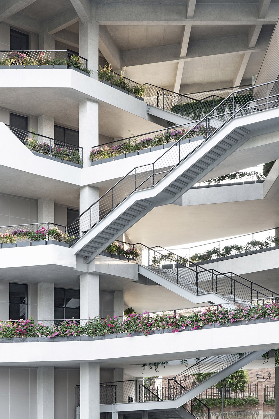 The building connections are designed as “service” portals, ranging from entrances, restrooms, transport hubs and external staircases, the must-have passages for dwellers. An “all-dimensional garden” approach is adopted, enabling a cheerful public space by introducing sunlight, greenery and expansive landscape in line of sight.
