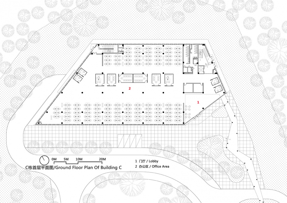 ▼C楼一层平面图,Ground Floor Plan of Building C ©东意建筑