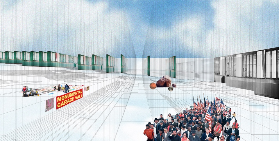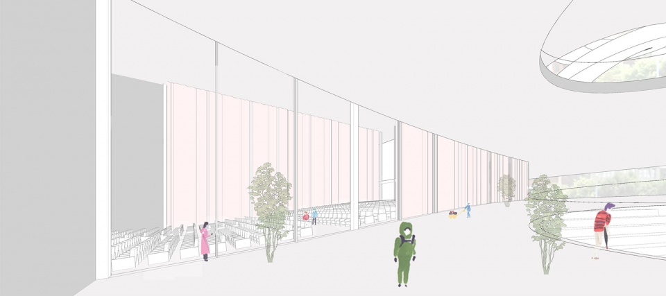 今日的博物馆常常被视作阳春白雪,是中产阶级、知识分子的身份象征,往往与下里巴人,现实社会所脱节。这不禁令人思索,我们真的需要这样的博物馆么?艺术本源自生活,脱离了真实与诚恳,艺术便失去了打动人的能力。为了反映博物馆的社会责任,在概念生成阶段,我提议了一个具有乌托邦性质的+大尺度的博物馆,尺寸为1km乘1.5km。这个巨型博物馆因其尺度自然具备了包容、开放、平等的特点。博物馆内部与日常生活并无不同,允许各种活动例如游行演讲、社区聚会、市集买卖等。将平时生活中的特性放大,让艺术在真实的背景中展现,以攫取真诚的力量。