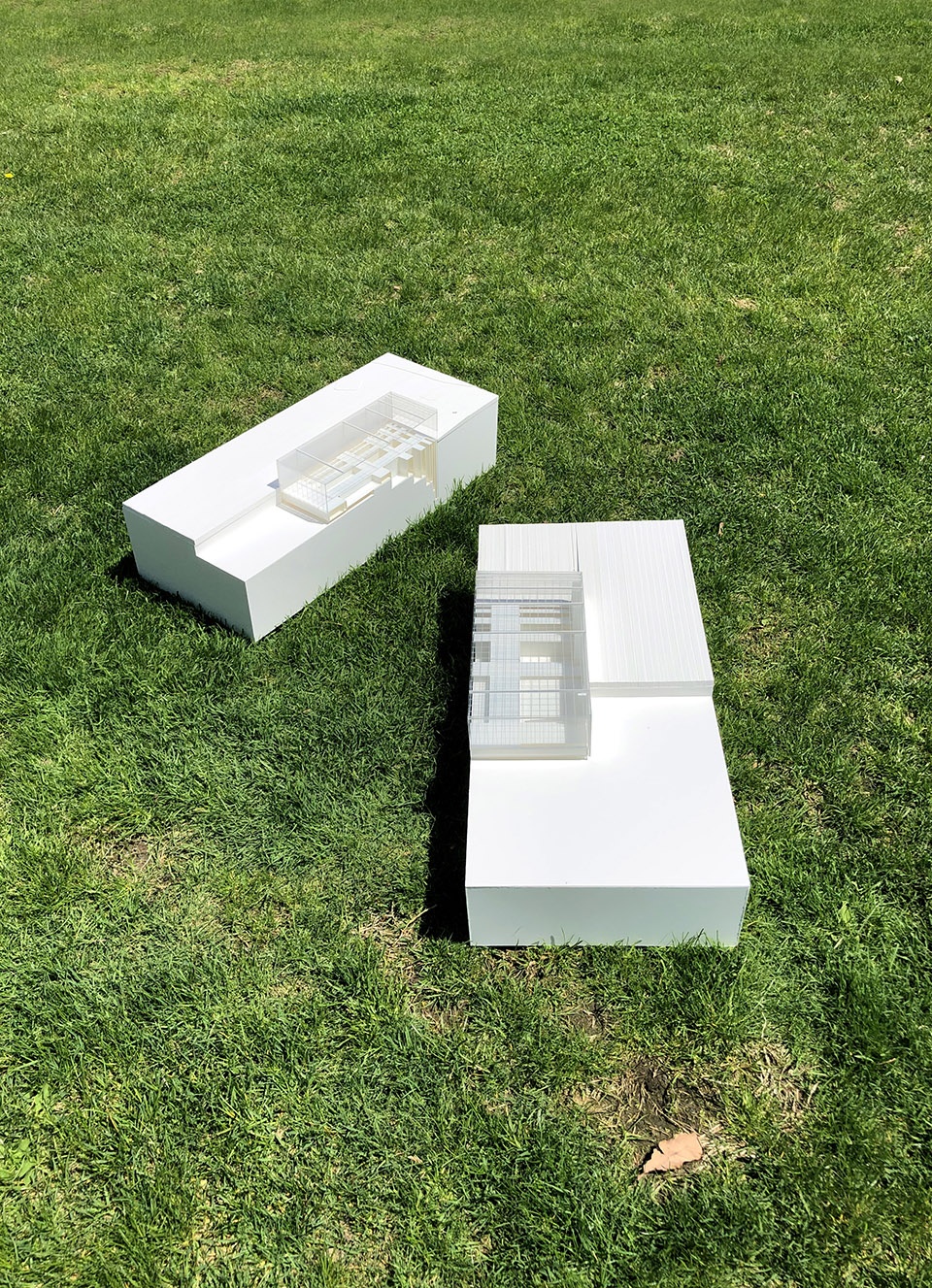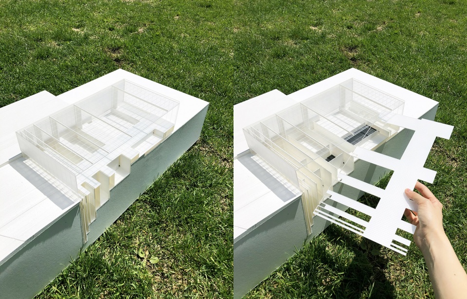 Located in central Berlin, the museum I propose is 50 meter by 50 meter in size, cantilevering over the water. It is composed of two parts, a flat social level, and a series of pits. The social level is not ticketed, allowing the public to visit and hang out freely. The artworks are located in series of pits, which are accessible through a delicate circulation system composed of ramps and elevators. The pits’ spatial qualities range from public to private. It is the artist’s choice to decide where in the museum their artworks are exhibited.