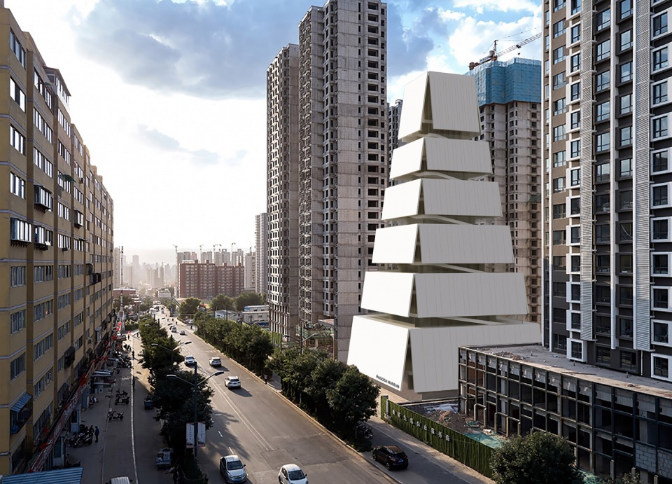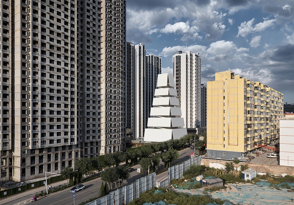 ▼塔室外渲染,Pagoda Exterior Render Reference: Dong Gong and Hao Chen “Changjiang Art Museum“ Vector Architects
