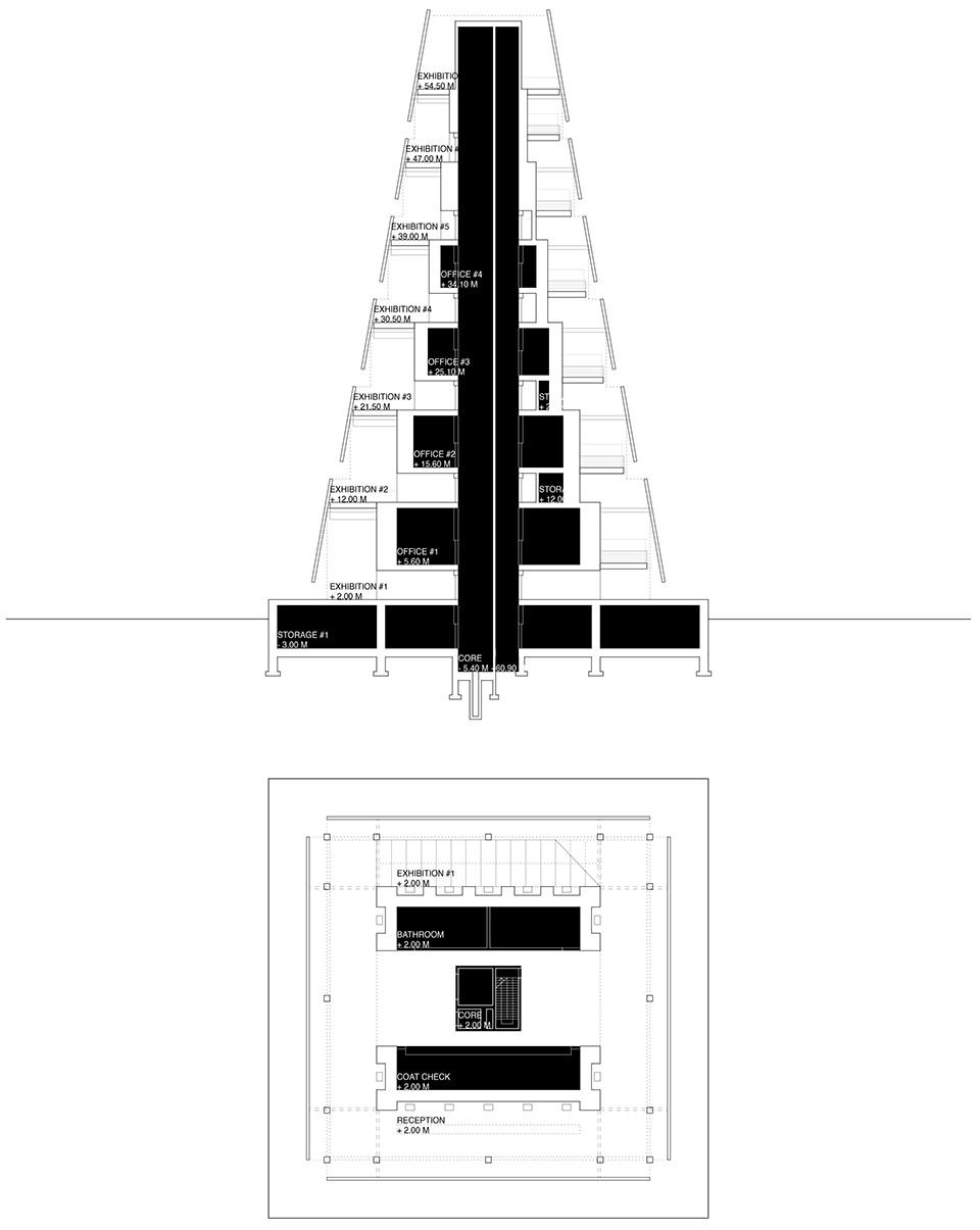 ▼重构博物馆概念平立面,Novel Museum Provocation Plan Section