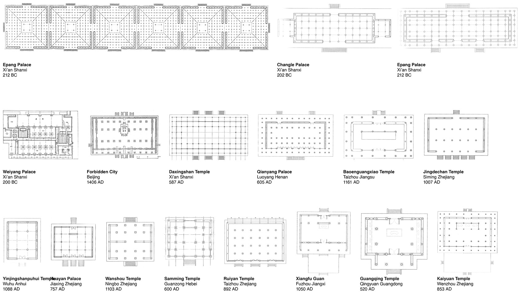 Palace is one of the oldest Chinese architecture typologies that can be dated back to the Shang Dynasty in 16th Century BC. The palaces vary in proportion and function, but they have a reasonably consistent composition. The palace is surrounded by a rectangular rammed earth wall, with a dense timber grid in the interior. Unlike most Western palaces where one can easily detect sub-components and hierarchy, the Chinese palaces create more like a field condition. One can freely move through, creating a potentially interesting open field exhibition space.