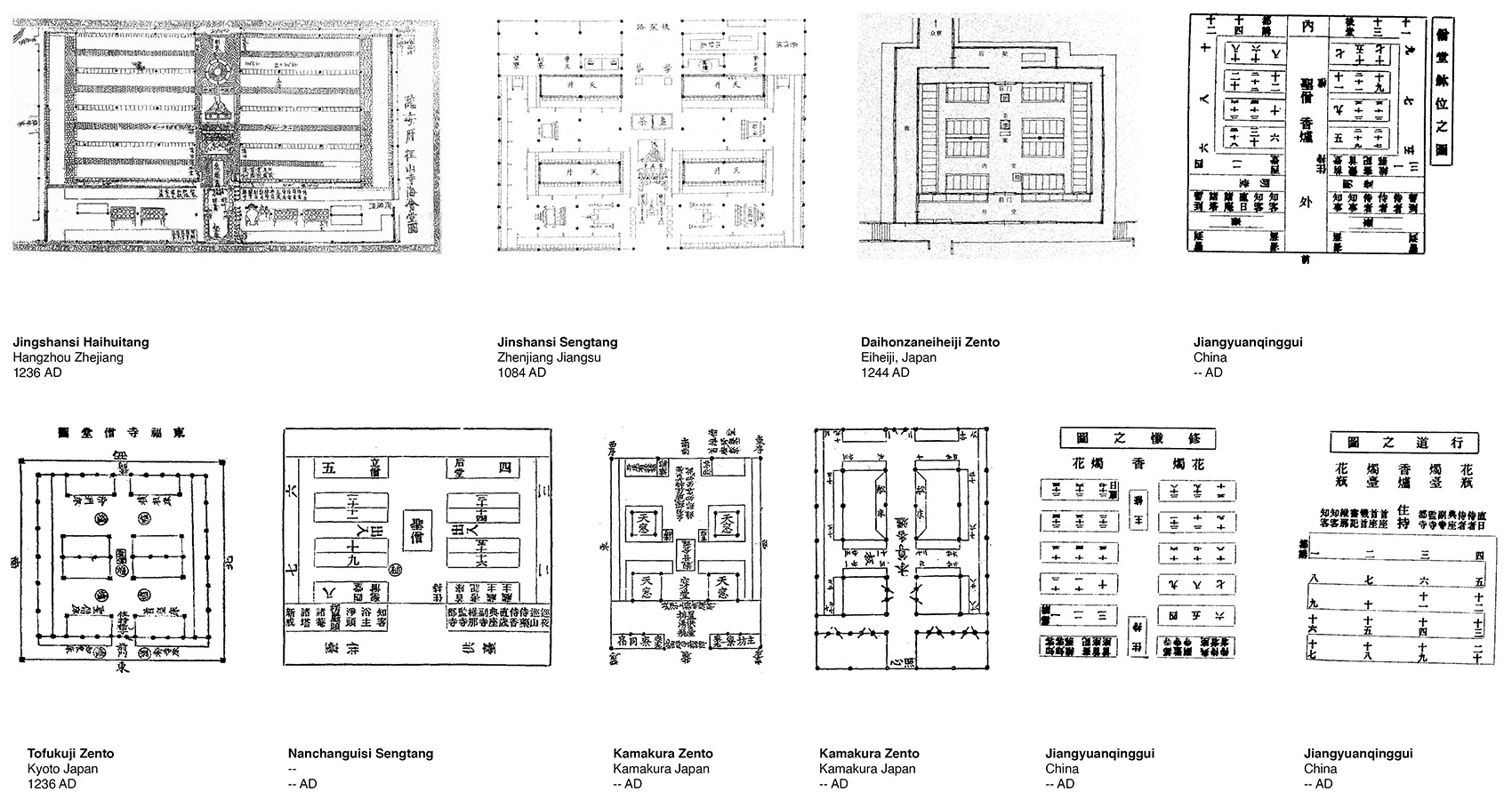 僧堂作为一个建筑类型在十世纪的宋朝达到高峰。由于佛教在宋朝达到前所未有的普及程度,小规模的讲经堂已经不能满足传教的需求,僧堂这一能容纳大量僧人同时学习、休息的建筑形式应运而生。僧堂的中心均有明显的对称轴,佛学大师在此讲经布道,侧边便是一排排重复繁多,供僧人学习休憩的小间。僧堂的结构使其易被转化为现代博物馆。中心的讲经堂可为大型的展览空间,而两侧的小间则成为小型、独立的展览空间。小间的重复性也让其有被转化为储存空间的可能,当其门打开,则为展室,门关上,则为储存室,应和了当下储存–展览一体化的博物馆潮流。