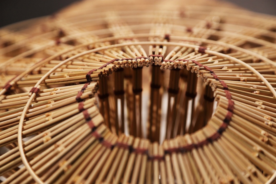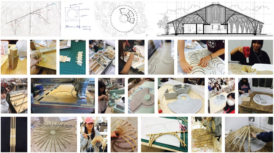 This project is from the advanced structure class, intending to reproduce the construction process with particular attention to the materiality and structure. We chose VTN Architects’ Eco Resort Pavilion as the subject of analysis. After carefully studying its construction sequence, we use bamboo sticks, strings, concrete, and oriented strand board, through a series of treatments to the bamboo, made this 1:30 model.