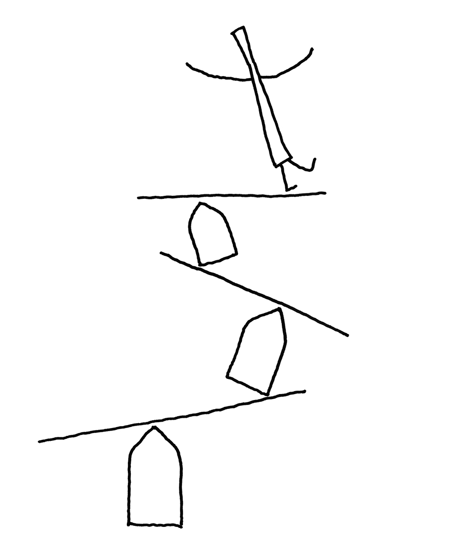 虽然桌面和基座被牢牢固定在一起,坚固厚重的桌面看上去却犹如漂浮在“尖顶”的基座之上。这种让桌腿顶部逐渐变细的设计使人产生一种失重的印象。边桌的基座重量使桌面的中心得以偏离,从而进一步加深了这种失重的观感。跷跷板系列利用大理石的材料特性,在自然的沉重感和设计的轻盈感之间建立了一种矛盾的平衡。
