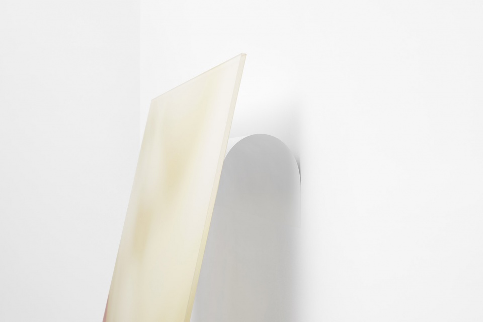 因为这次展出的作品都高品质地印刷在了亚克力板上,所以设计计师为作品设计了灵活的,具有反弹力的薄金属支撑板,而不是将它们放置在固定的框架上,或是挂在画架或墙上。在墙上展示的作品,根据不同重量采用了不同的金属板,以此达到平衡,例如较小的作品使用厚度为0.2mm的不锈钢板,较大的作品则使用厚度为0.3mm的不锈钢板,以此类推。此外,放置在展台上的作品则使用0.08mm的金属板支撑于一侧,使作品投下适当的阴影,增强作品的悬浮感。