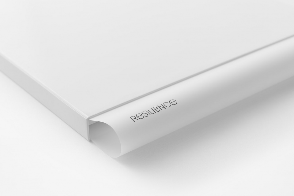The logo was designed as though pressure applied from both ends of the text were compressing the center. Next, a paper with high elasticity was chosen for the catalog cover and forced into the case to create a perpetual state of resilience inside the case, which resulted in producing a uniquely arched spine.