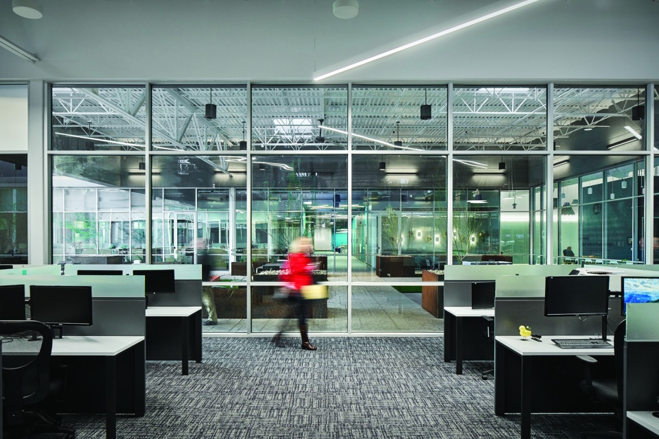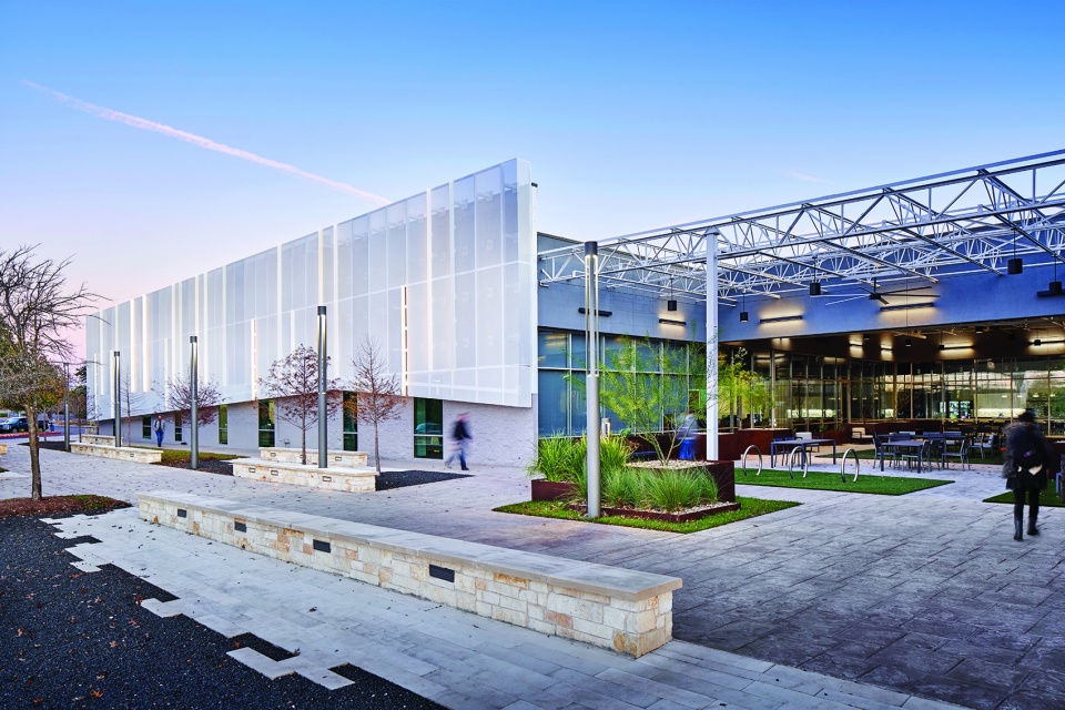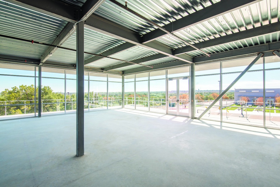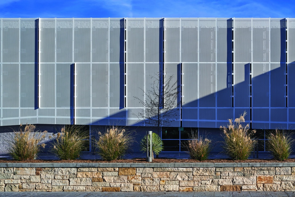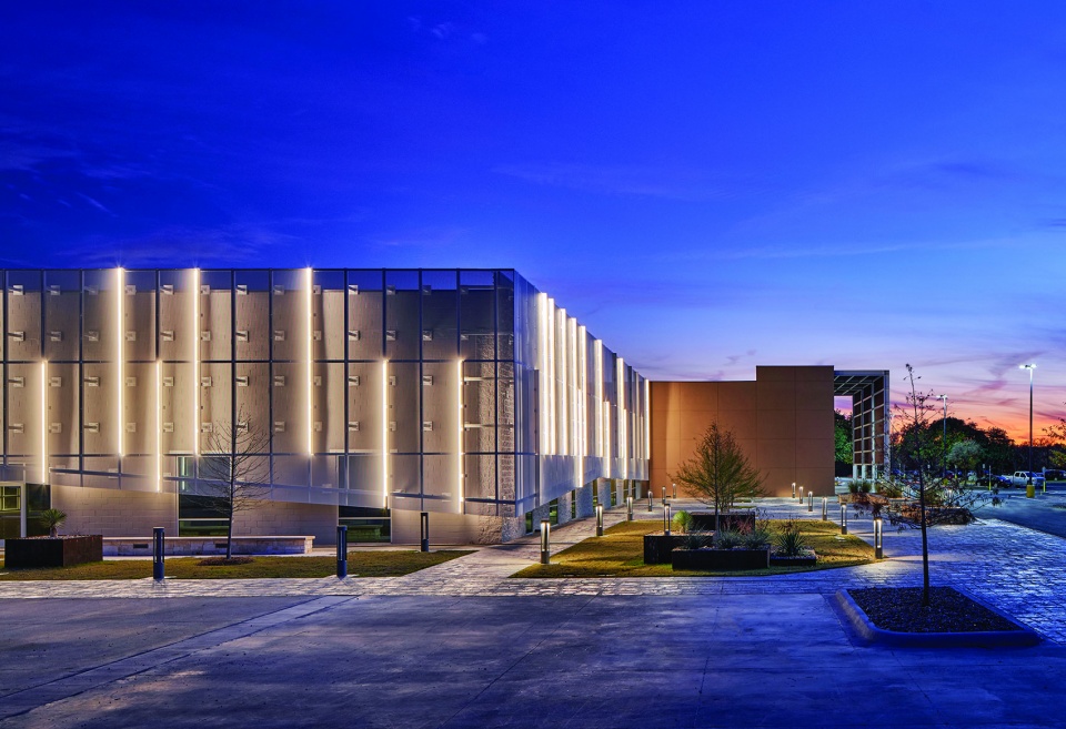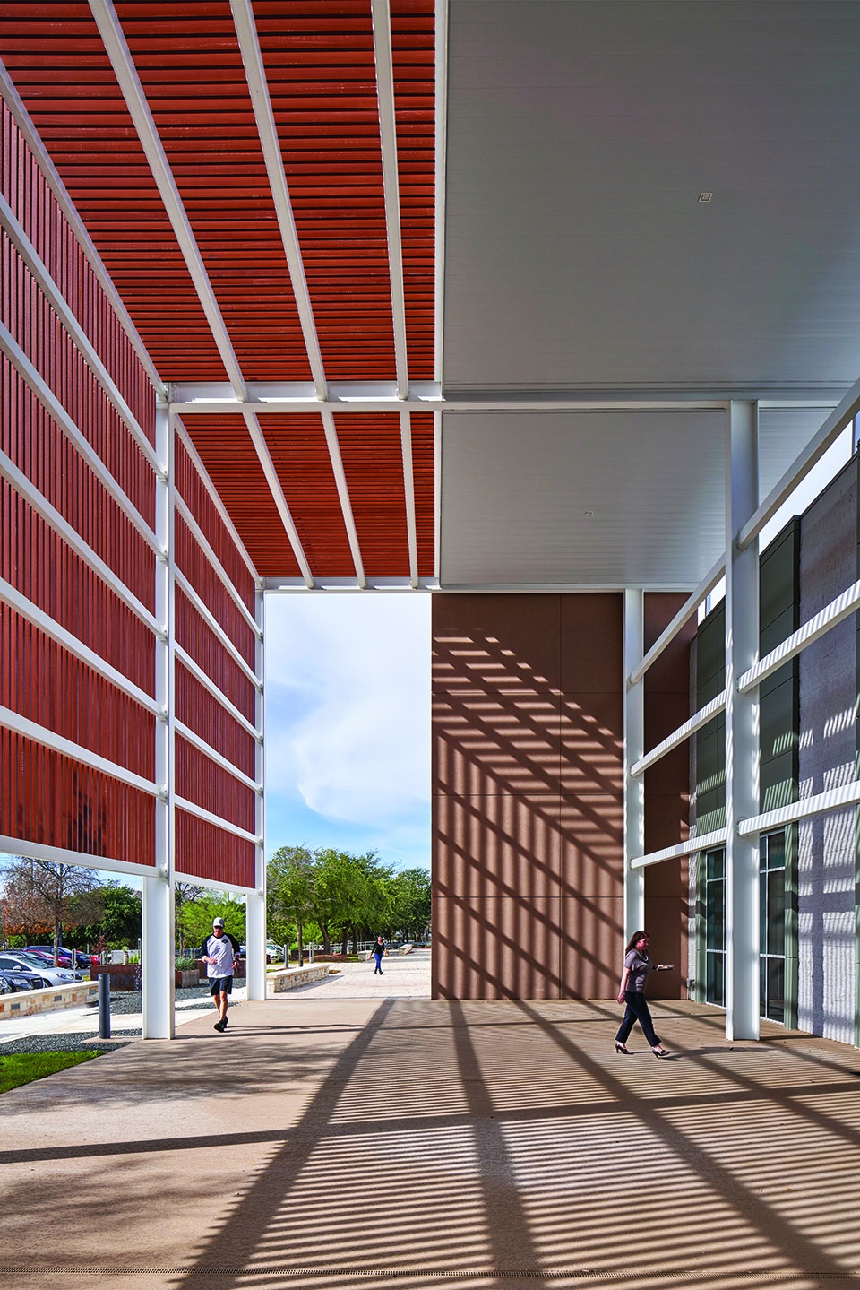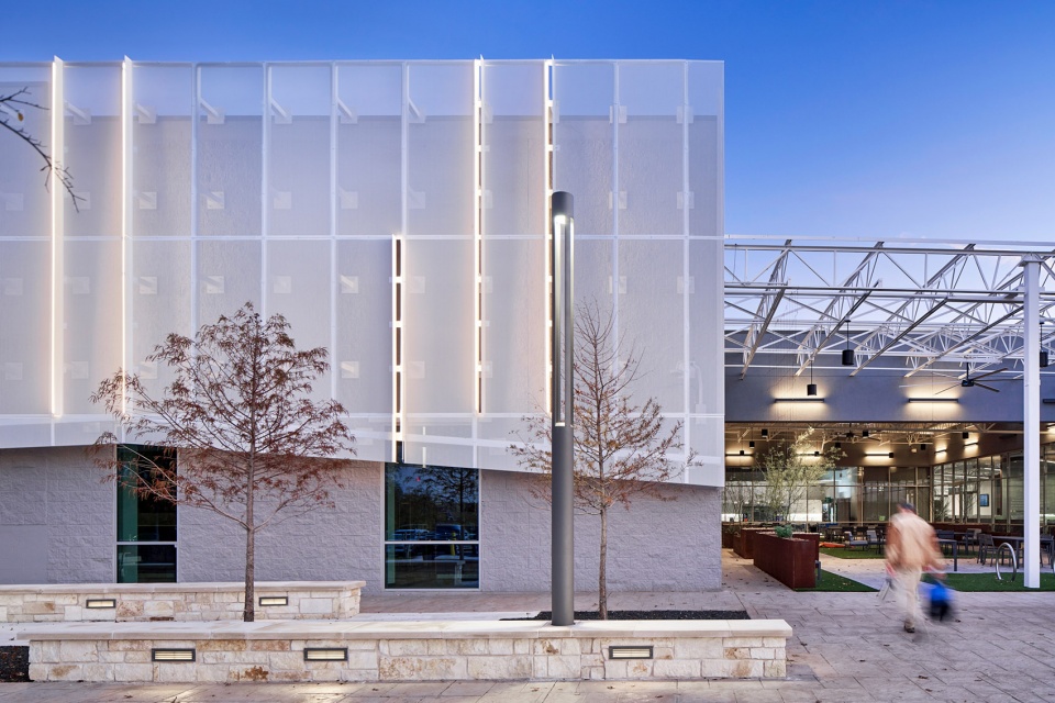 Employees have a choice of amenities to enjoy including a fitness center, putting green and sport courts, bicycle shop, vegetable gardens, dog run, beautiful landscaped areas, and a roof deck with eye-popping views over Lake Travis into the adjacent Balcones Canyon land Reserve. Still more important, the building reconnects its occupants to the natural environment, an extension of the same commitment to sustainability that inspired the project at the outset.