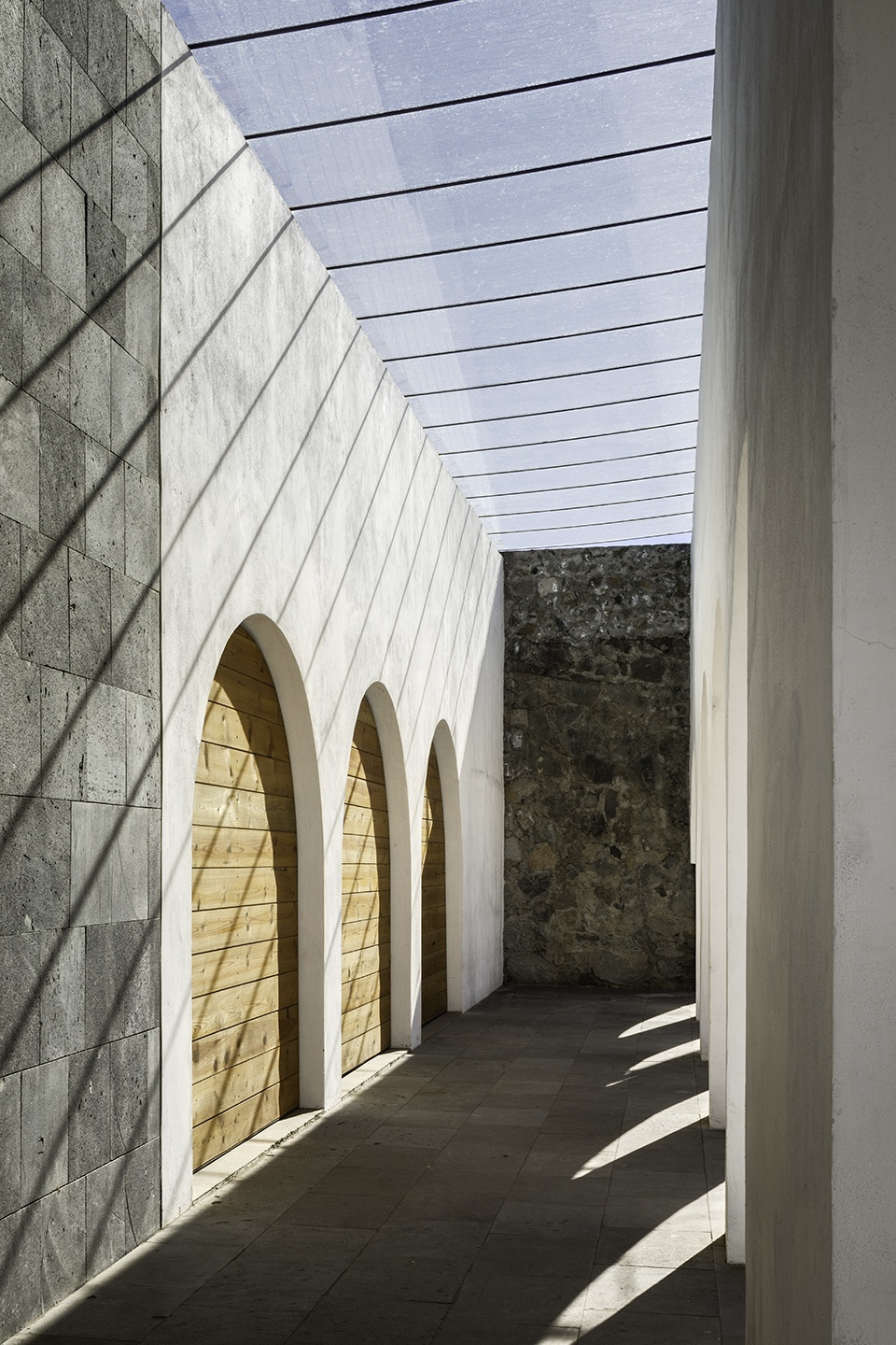 走廊使用了一系列拱形结构和矩形框架,创造出现代语言和本土语言之间的对话,为人们提供了一个集会的地点。
