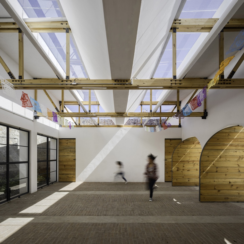 The project was developed on the basis of recovering the outer walls and foundations of a pre-existing building that had fallen into disuse. With a walkway at the front, the project is organized into two main halls, the larger one housing fourteen stalls for artisans from various parts of the municipal district, while the smaller one has a space for workshops. Each area is also connected to a courtyard that can be used as necessary for other activities.