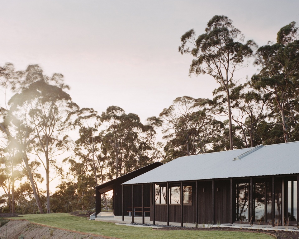 Two Sheds is located on 25 acres of bush in the hills immediately to the west of the Lorne township, Victoria, Australia. It is a retreat allowing the clients to disconnect from the world of city, noise, and work as they come together to reconnect and begin a 30-year project to rejuvenate the surrounding bushland. The project uses a minimal material palette and a simple design language drawing from local cottages, agricultural buildings and Australian vernacular. It provides a backdrop for cherished family experiences as the inhabitants slow down, notice and engage with the simple joys of living.